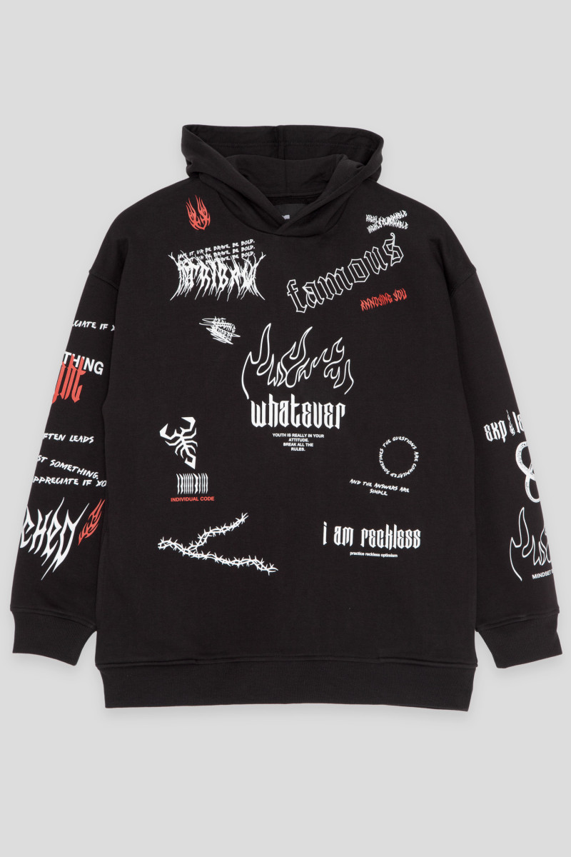 Czarna bluza REGULAR z kapturem z autorską grafiką z przodu