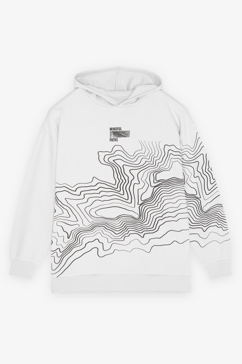Szara bluza z kapturem z nadrukiem z przodu, wykonana z bawełny czesankowej wysokiej jakości