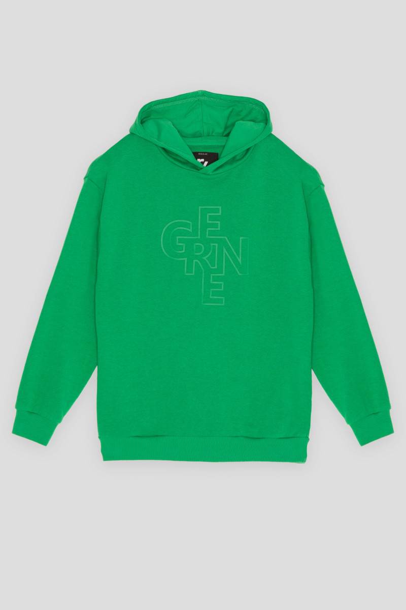 Zielona bluza z kapturem z nadrukiem z przodu wykonana z bawełny czesankowej wysokiej jakości