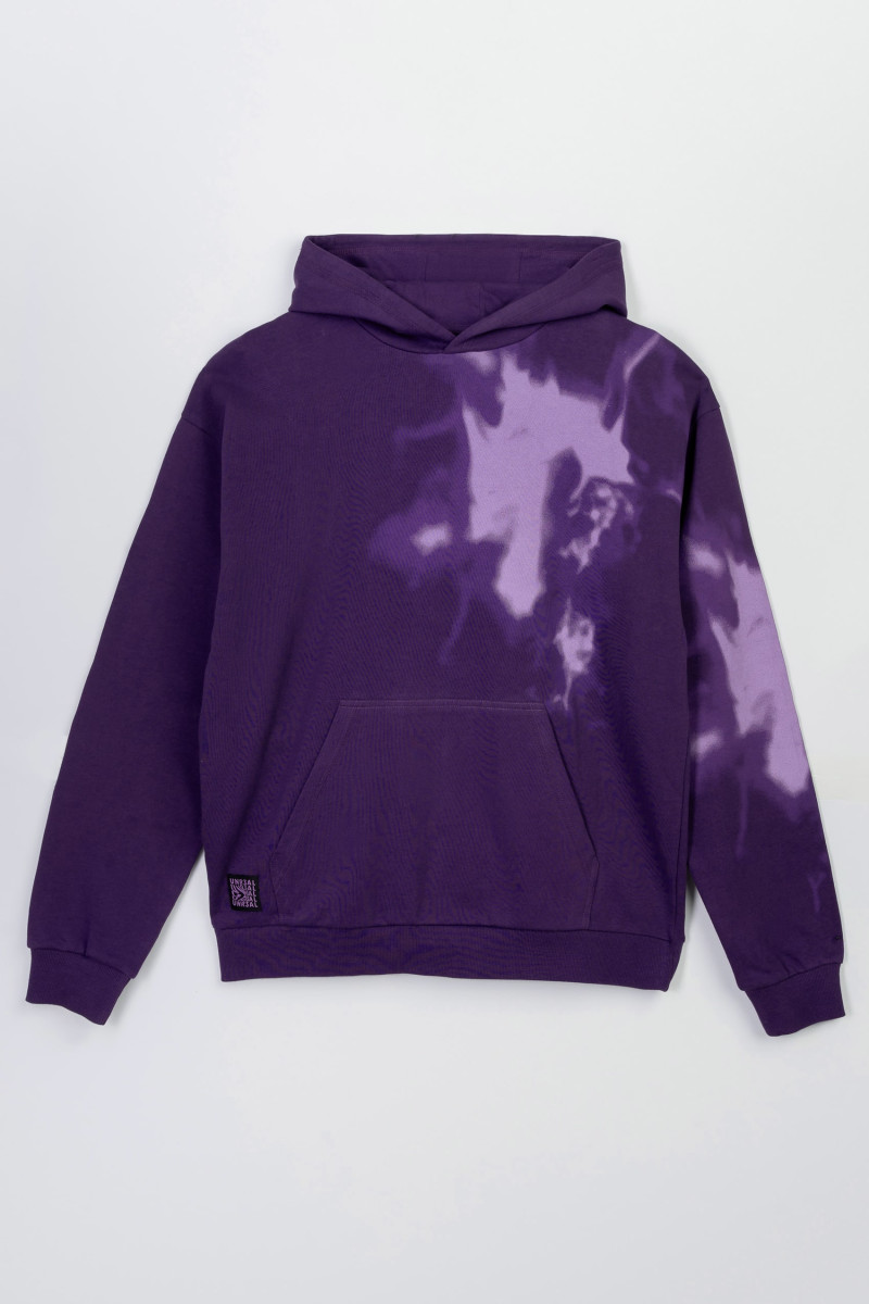 Fioletowa bluza THICK LOOP z kapturem z kolorowym nadrukiem z przodu i na rękawie