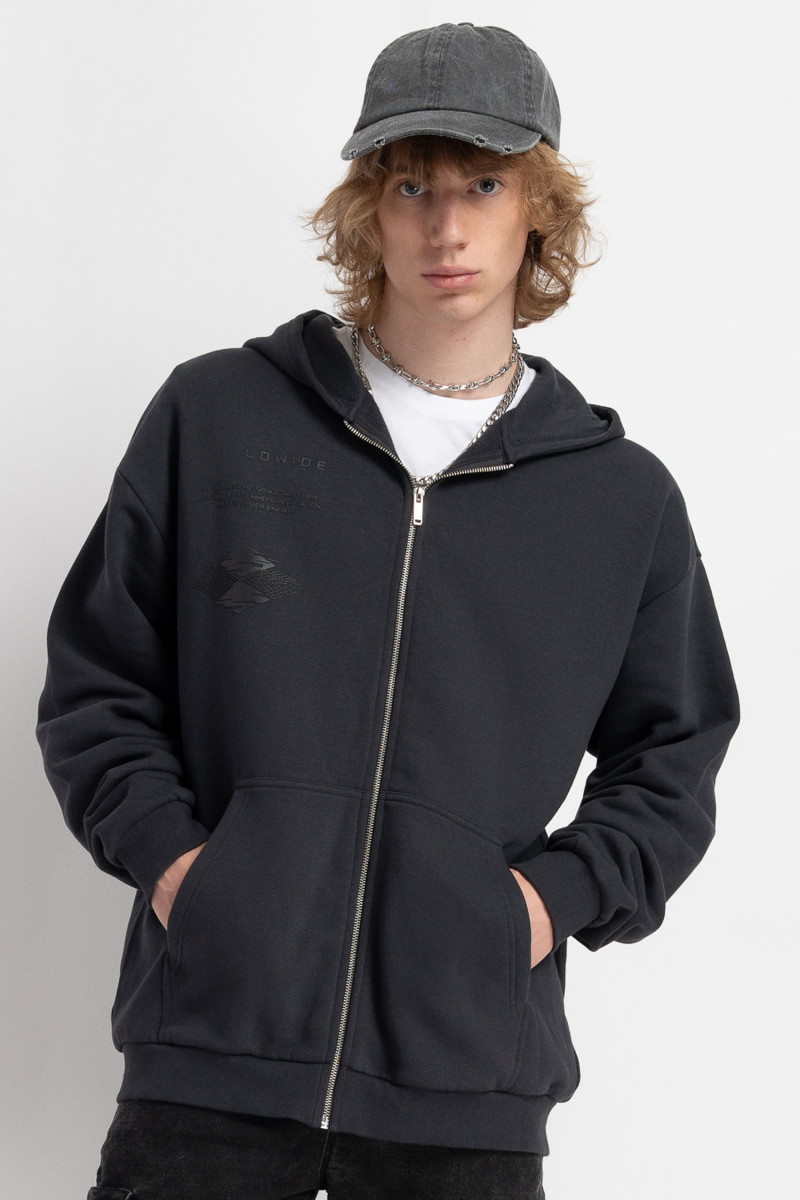 Ciemnoszara bluza BOXY z kapturem zapinana na zamek