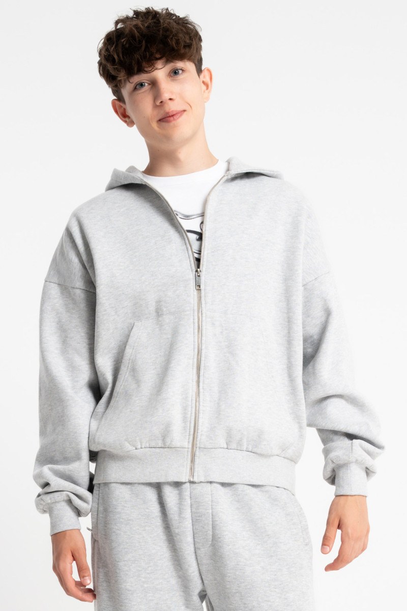 Szara bluza z kapturem bez nadruków zapinana na zamek  wykonana z bawełny czesankowej wysokiej jakości