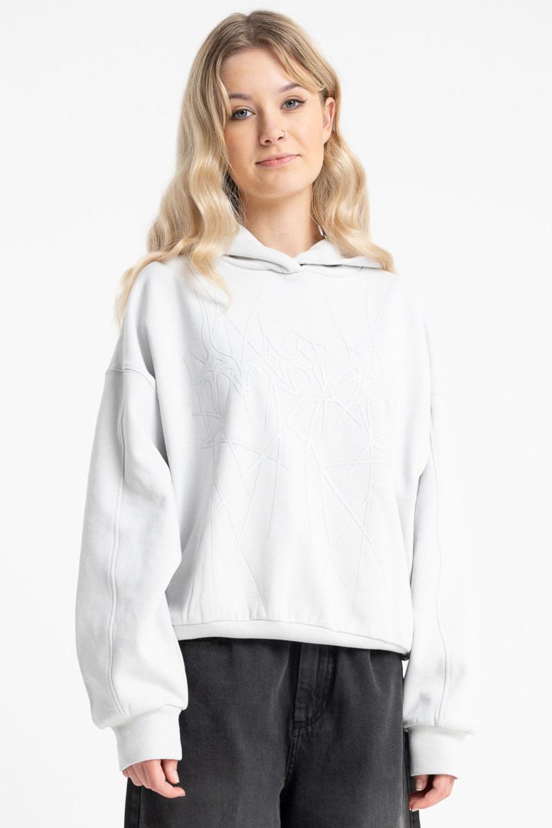 Jasnoszara bluza BOXY z autorską grafiką z przodu wkładana przez głowę