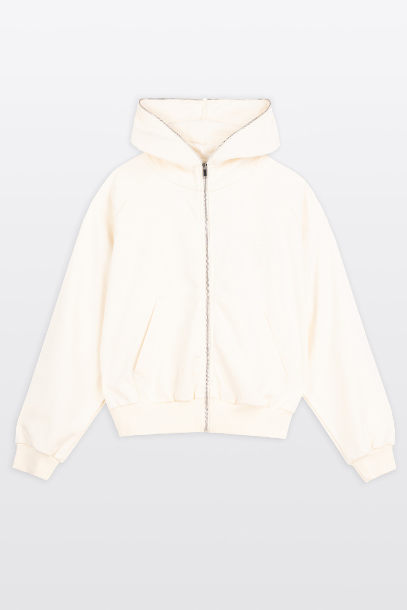 Kremowa rozpinana bluza BOXY z kapturem