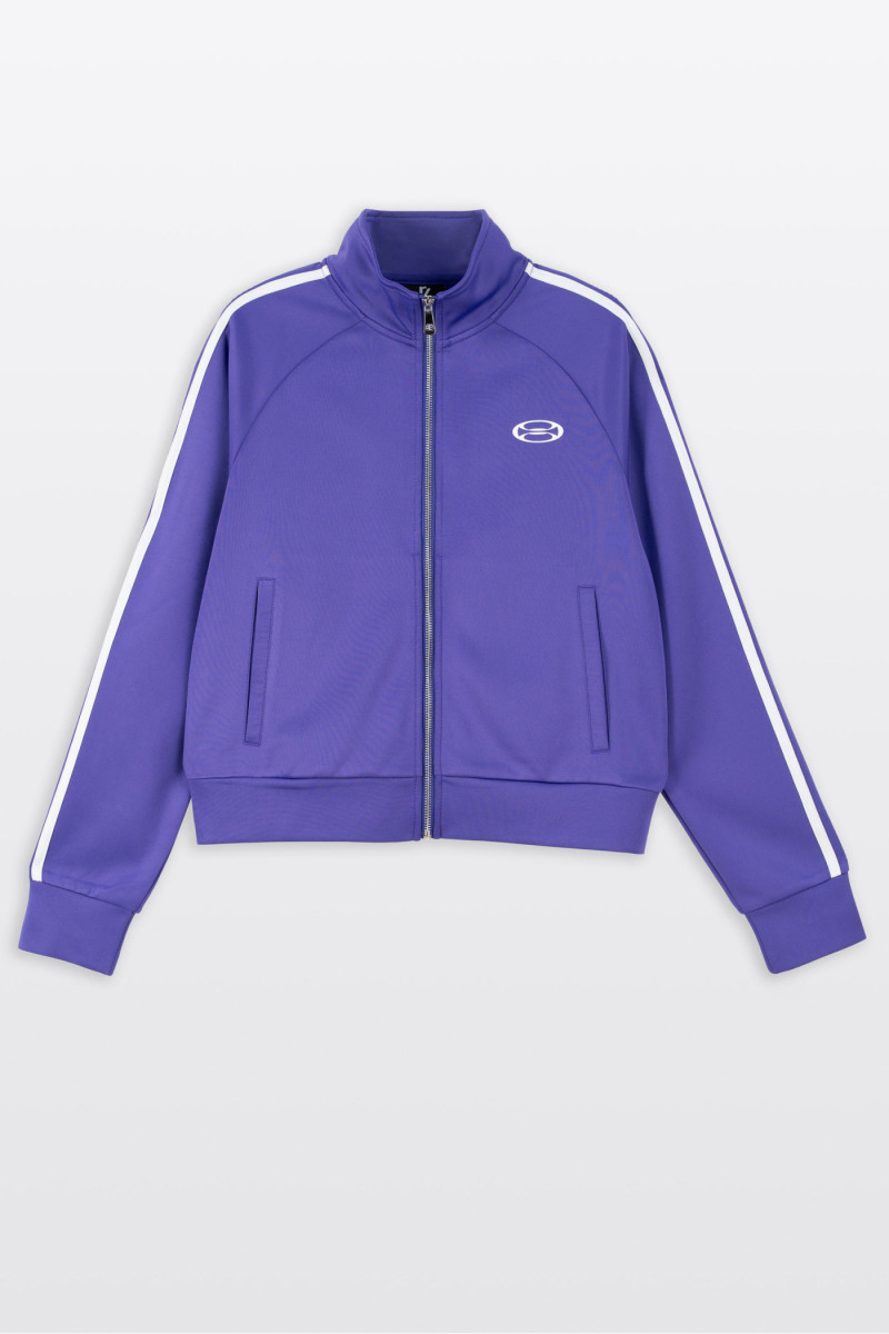 Fioletowa bluza z kontrastowymi lampasami na rękawach