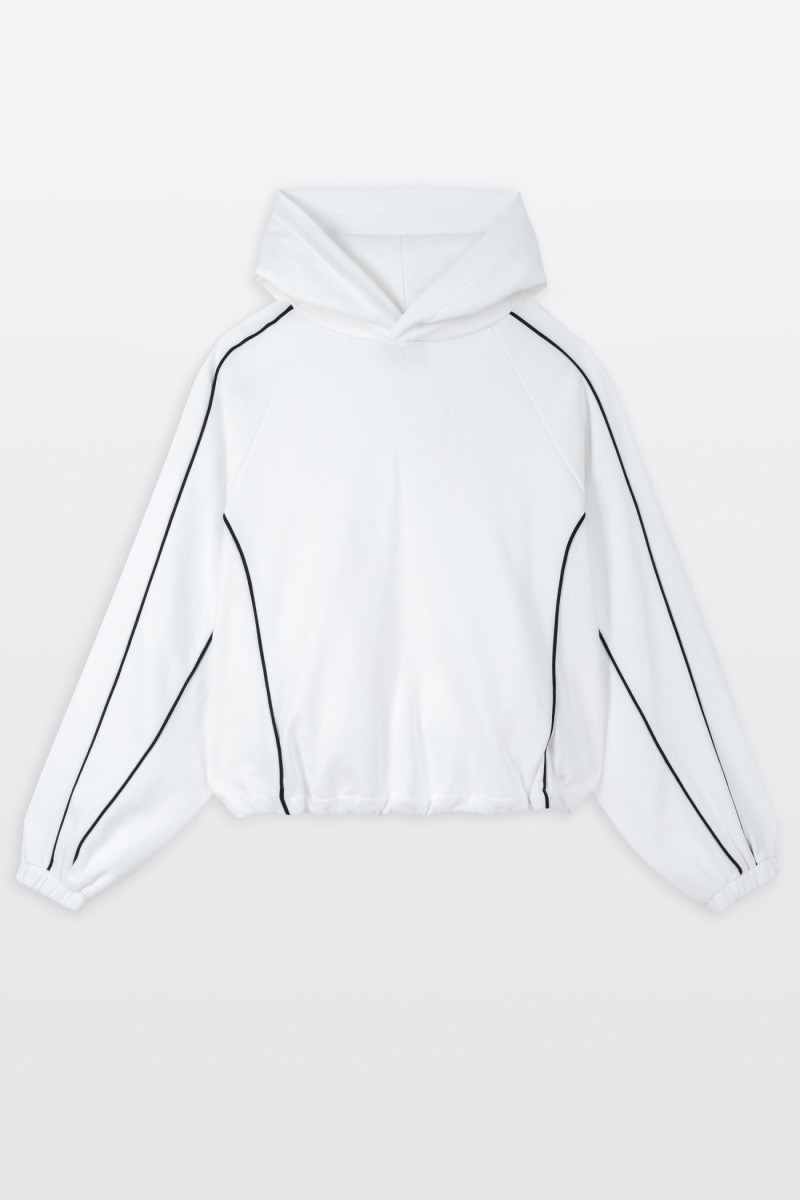Biała bluza BOXY z kapturem z kontrastową lamówką