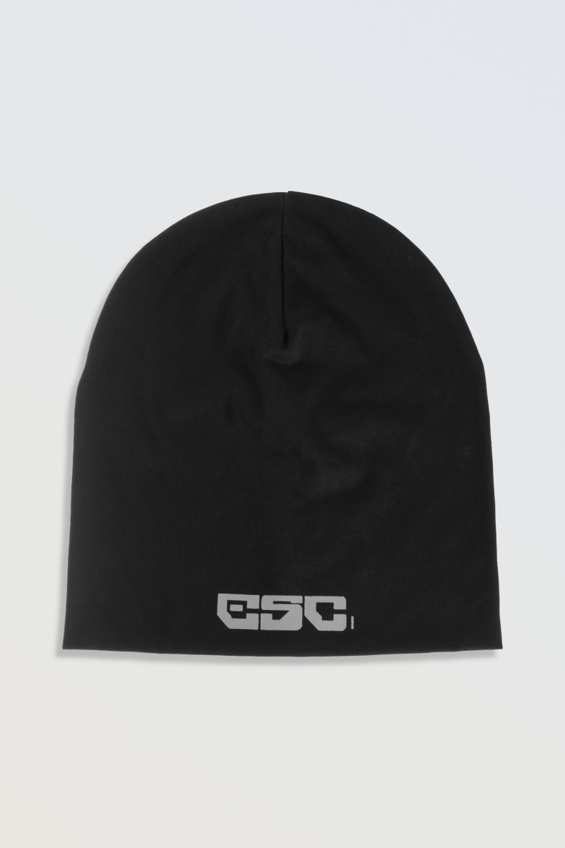 Czarna czapka typu beanie z szarą grafiką z przodu
