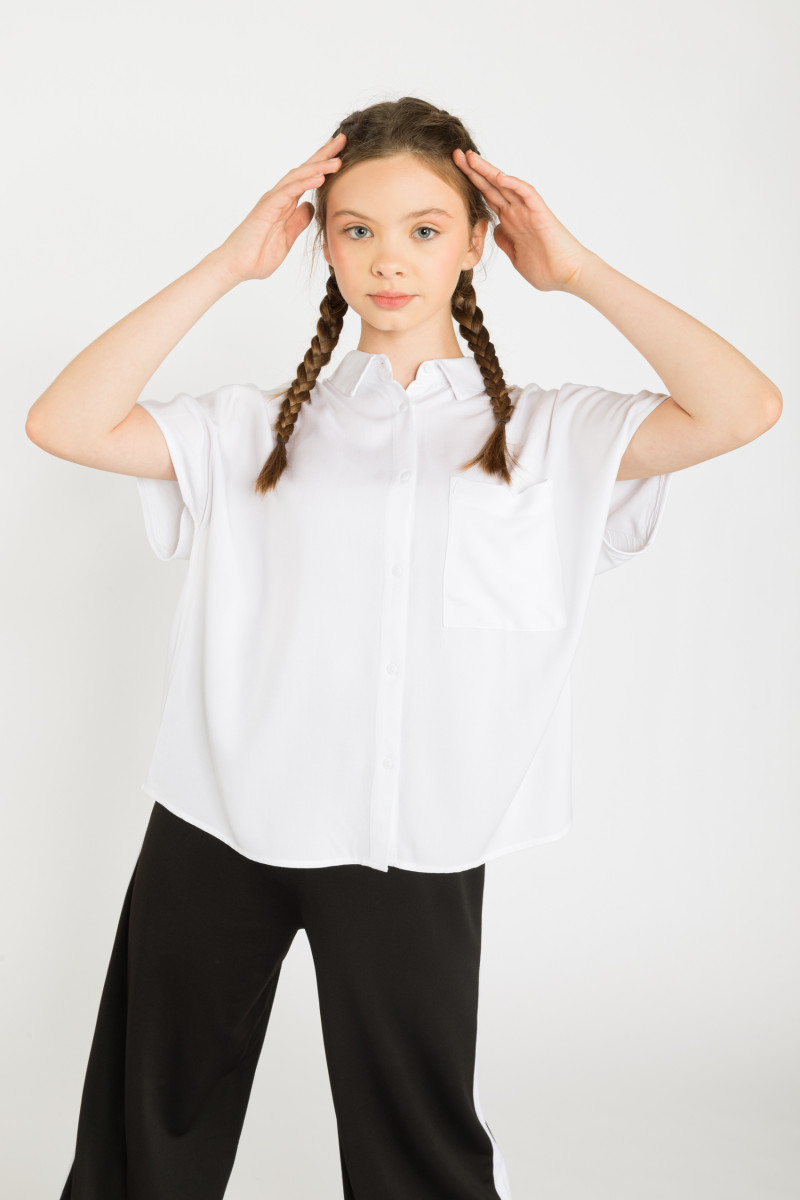 Biała pudełkowa koszula z krótkim rękawem dla dziewczyny