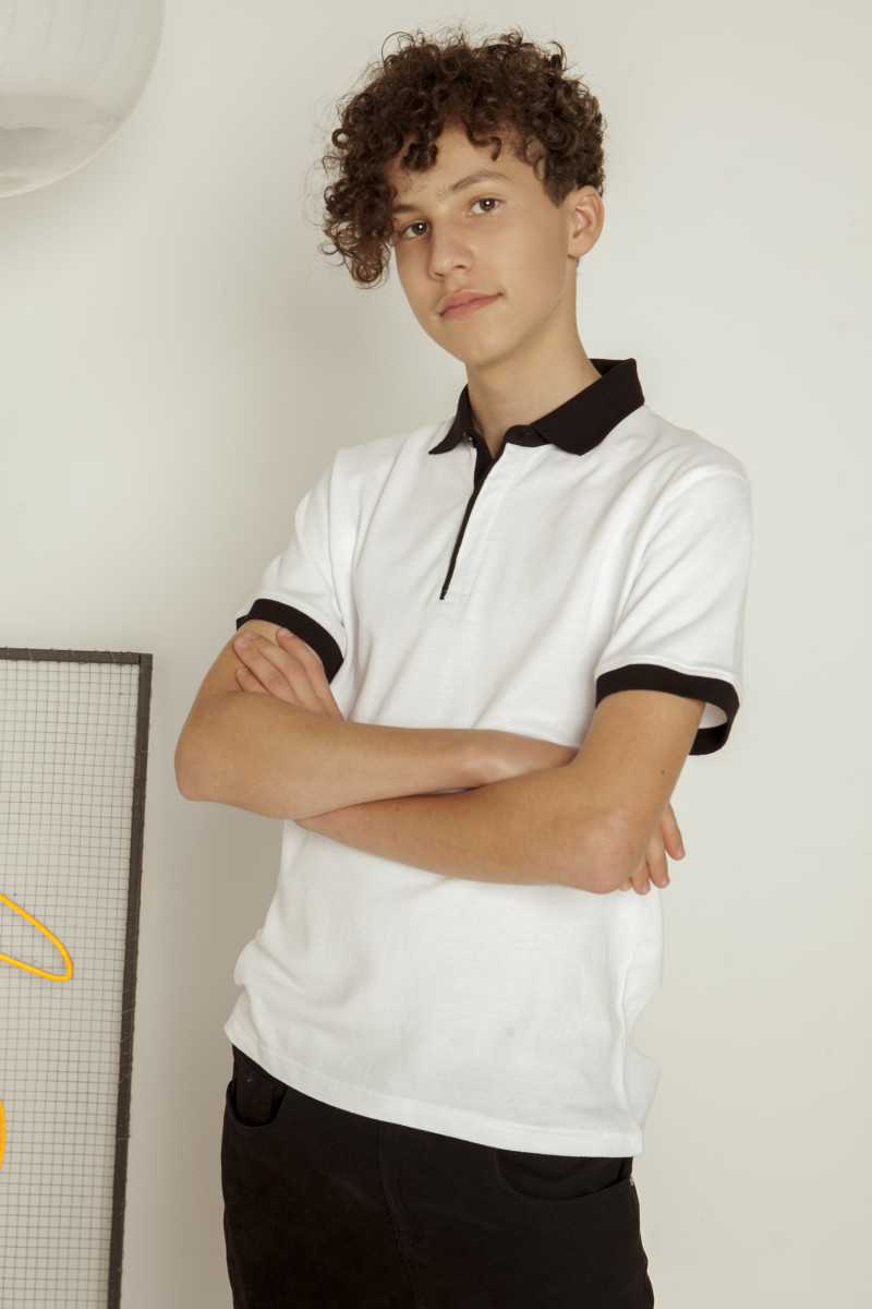 Biała koszulka polo REGULAR z krótkim rękawem z czarnymi elementami