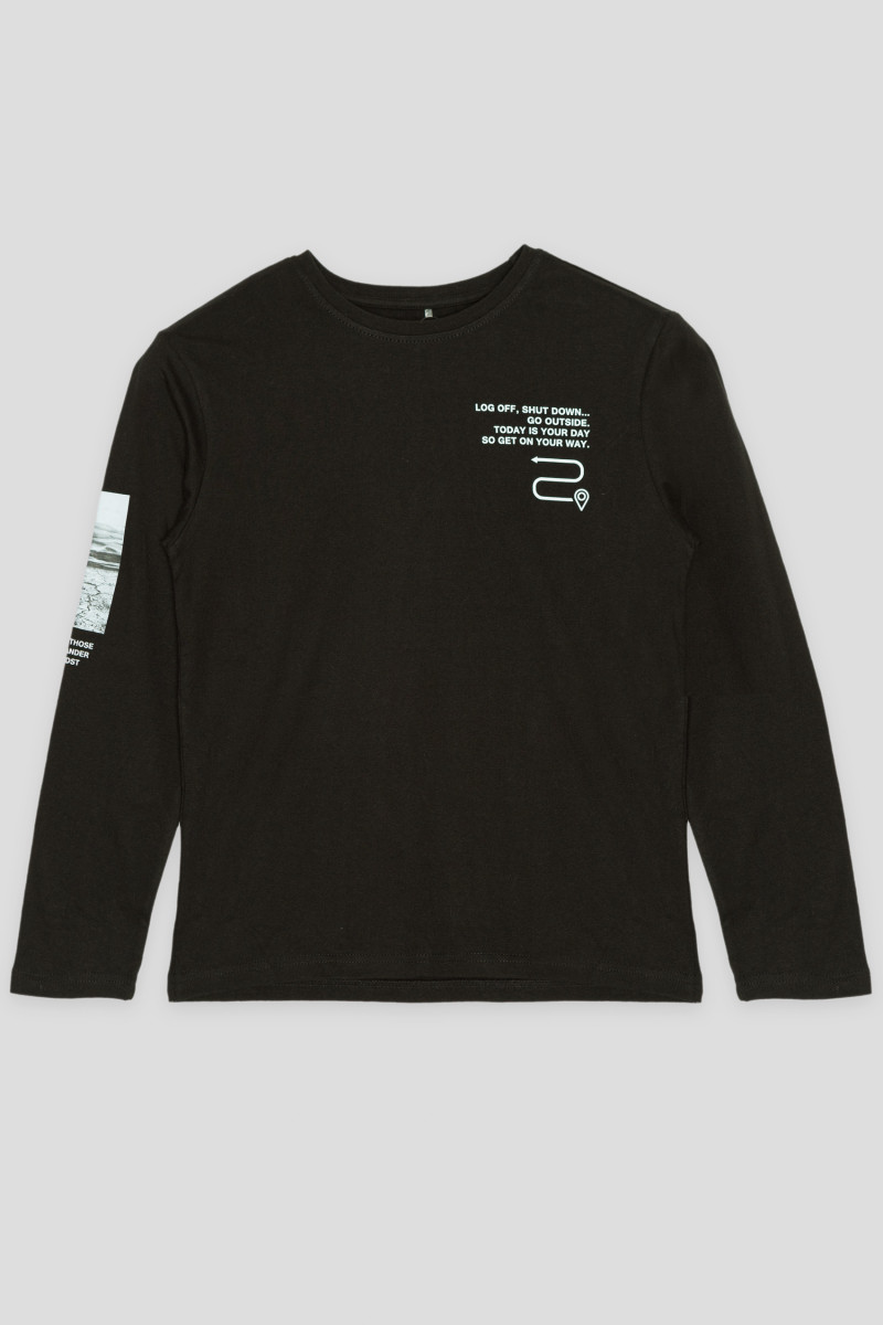 Czarna koszulka z długim rękawem i nadrukami