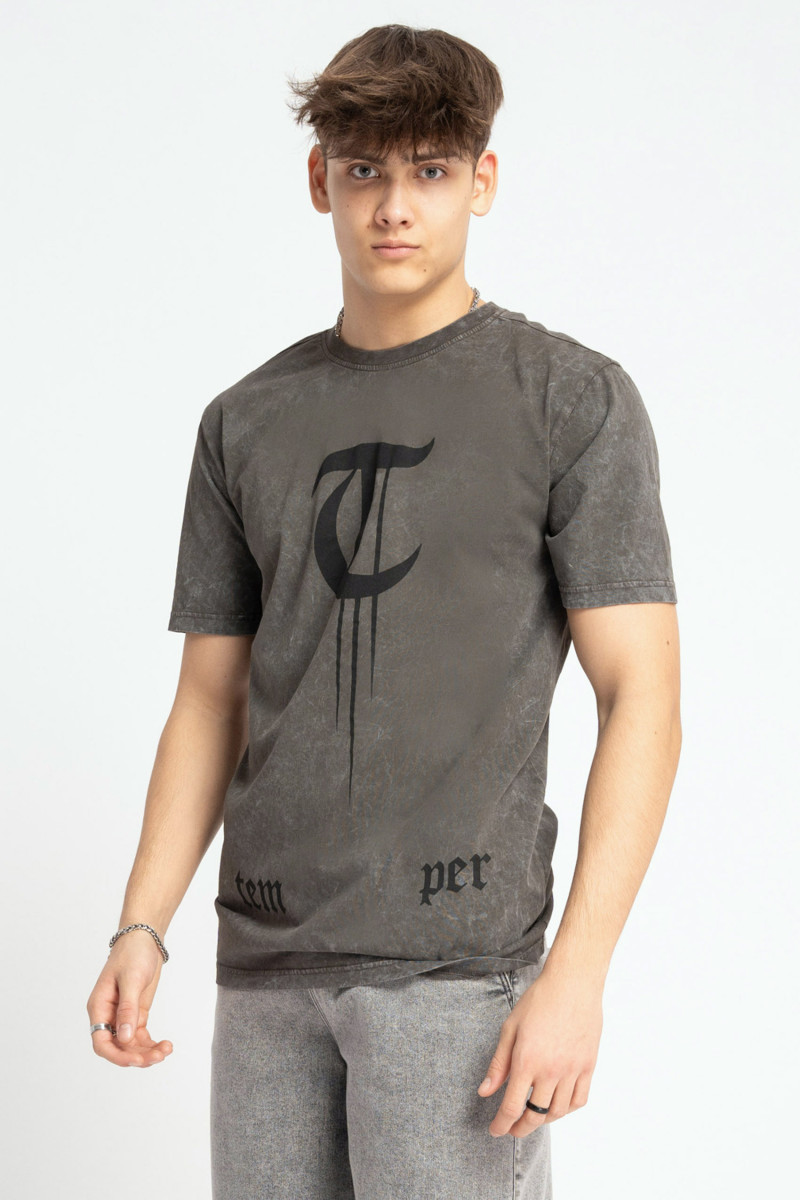 Brązowy t-shirt z efektem sprania z autorską grafiką z przodu