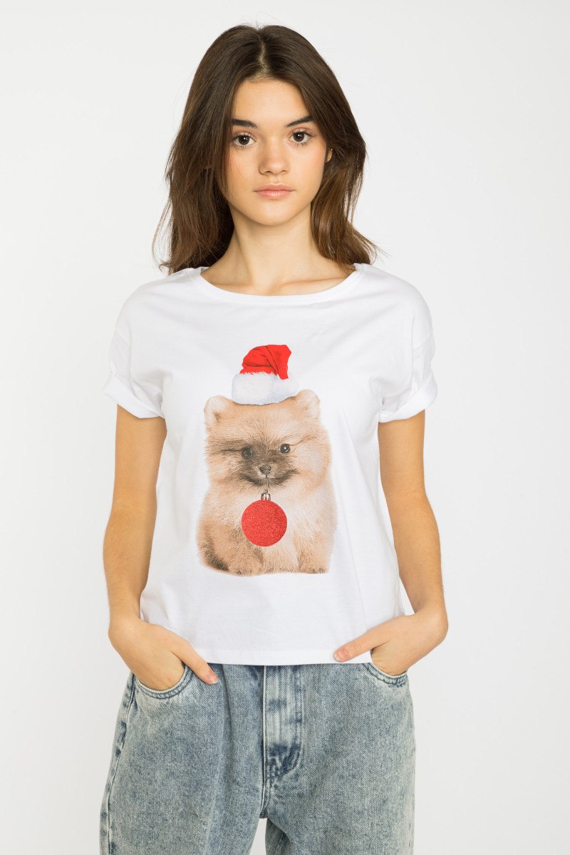 Biały świąteczny T-shirt z nadrukiem od Reporter to esencja stylu i radości świąt. W uniwersalnym białym kolorze, ten T-shirt prezentuje się z wyjątkowym pudełkowym krojem, gwarantującym swobodę ruchów. Krótki rękaw dodaje lekkości, a dekolt z lamówką podkreśla wyjątkowy design. Ozdobna grafika z przodu to hołd dla świątecznej atmosfery, idealny sposób na wyrażenie własnego stylu. Wykonany z przyjemnej w dotyku 100% bawełny, ten T-shirt zapewnia wygodę na każdym kroku. Ubrania Reporter to nie tylko jakość, lecz także unikalne wzory, które pozwolą wyrazić Twoją osobowość. Gotowa na świąteczne szaleństwo?