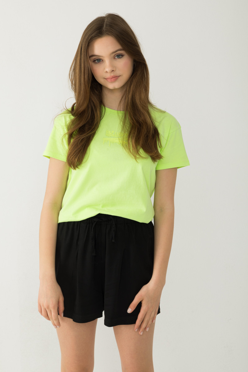 Czarny t-shirt dla dziewczyny z krótkim rękawem SKI