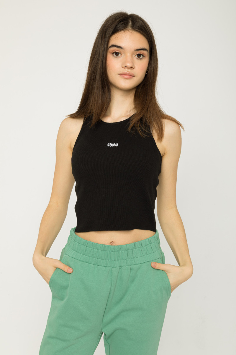 Czarny top na ramiączkach z haftem