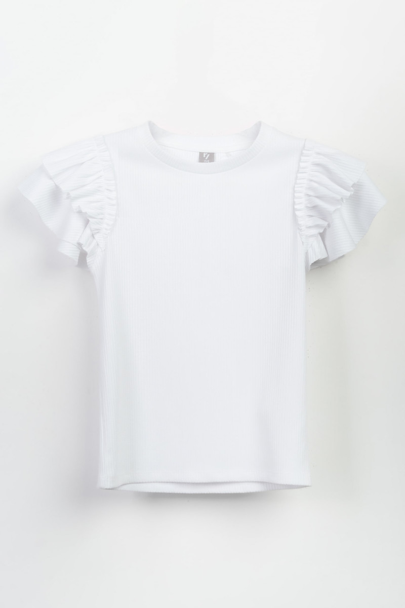 Biała bluzka z dzianiny prążkowanej z ozdobnymi rękawami
