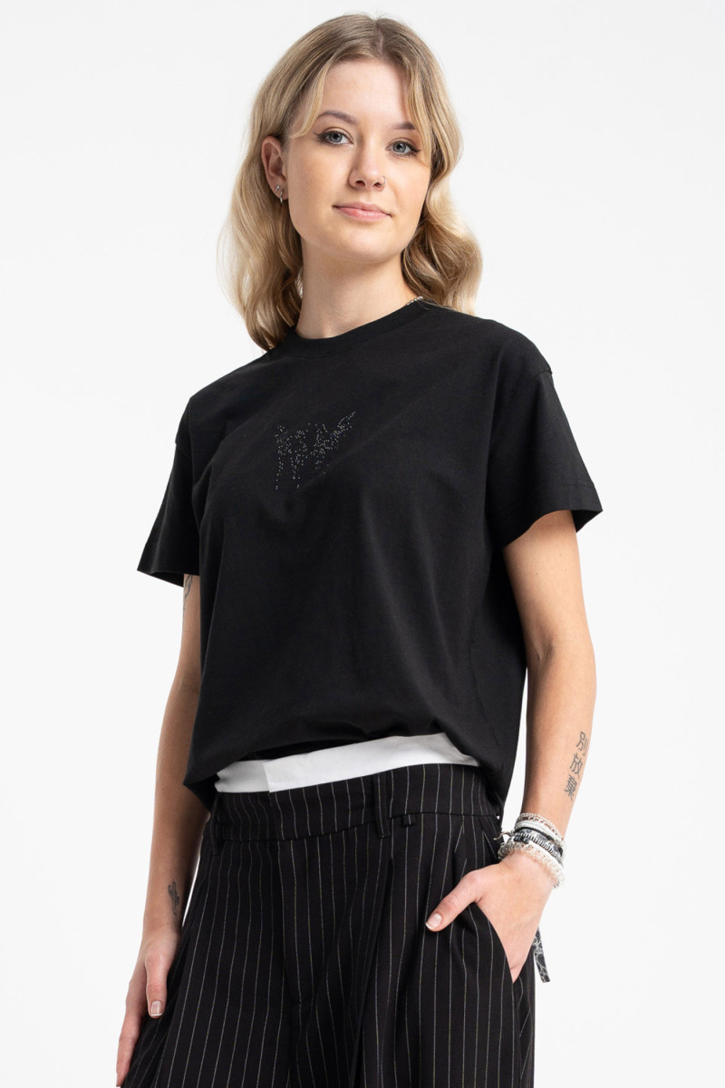 Czarna bluzka COMFORT z ozdobnymi kryształkami w kolorze bluzki