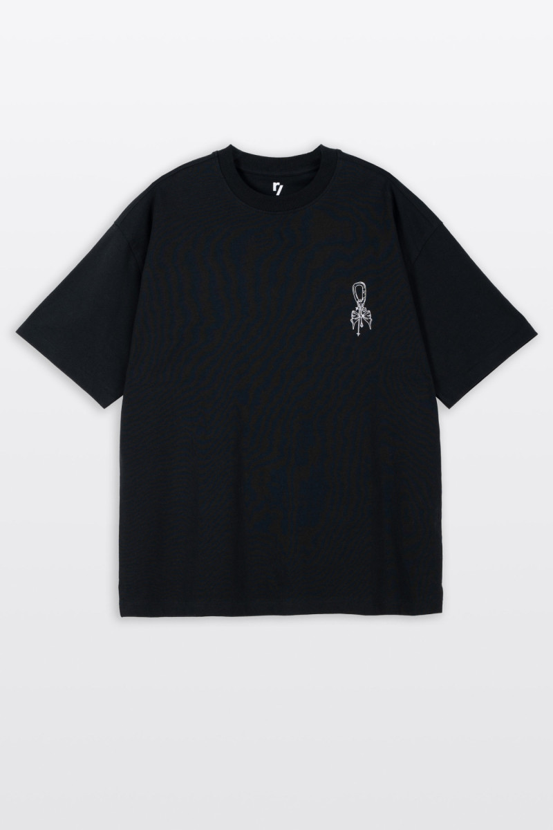 Czarny t-shirt OVERSIZE z minimalistyczną grafiką