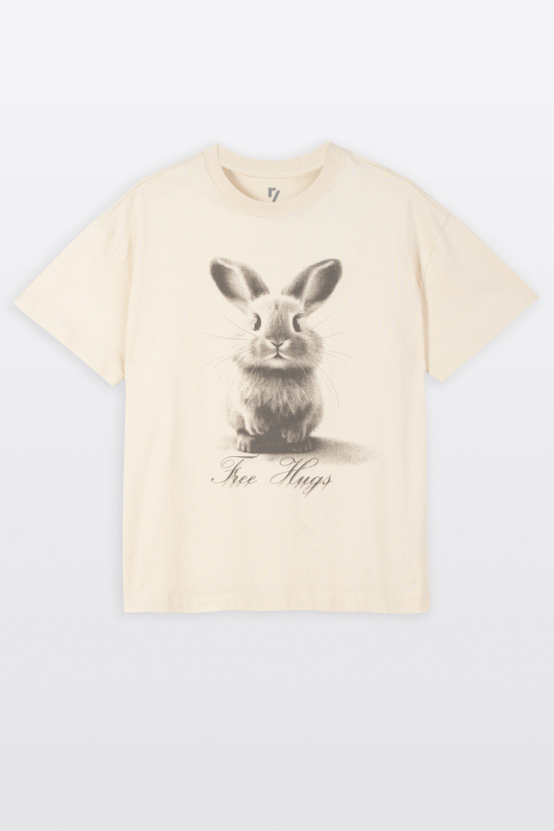 Kremowy t-shirt COMFORT z autorską grafiką z przodu