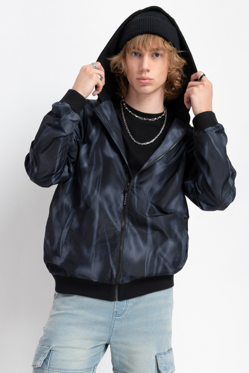 Niebieska kurtka przejściowa z kapturem z efektem cieniowania to połączenie komfortu i miejskiego stylu. Luźny krój, długość do pasa i zwężające się rękawy z gumką sprawiają, że idealnie dopasowuje się do sylwetki. Wykonana z matowego, miękkiego materiału, posiada cienką podszewkę, dzięki czemu jest lekka i wygodna. Obszerne kieszenie na zamek pomieszczą niezbędne drobiazgi, a kaptur ochroni przed chłodem. Subtelna, odblaskowa naszywka z tyłu dodaje nowoczesnego akcentu. Reporter to jakość i niepowtarzalne wzory – postaw na oryginalny design i wygodę każdego dnia!