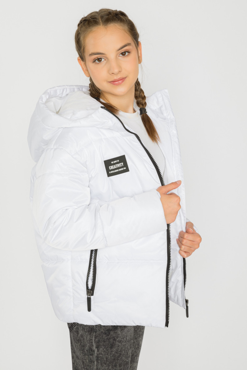 Biała kurtka dla dziewczyny z kontrastowymi zamkami