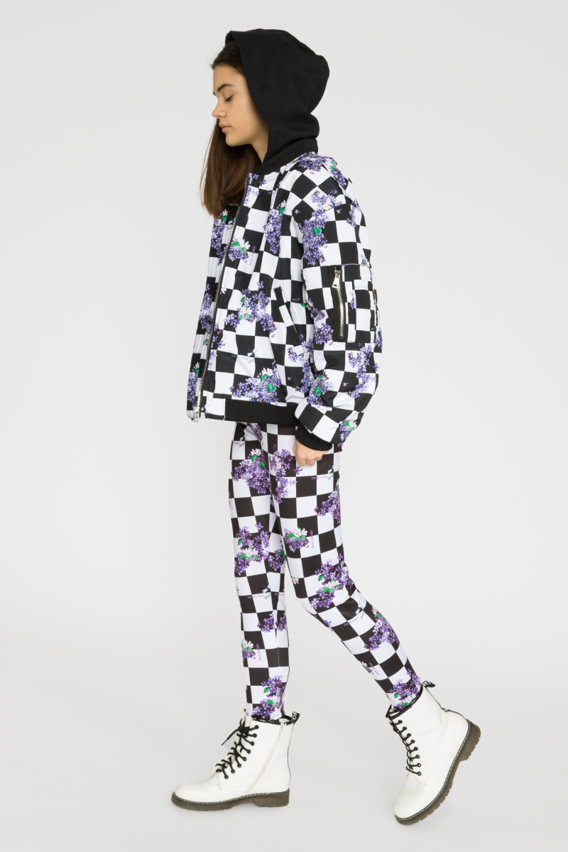 Wzorzysta parka z kieszeniami i kapturem dla dziewczyny SZACHOWNICA