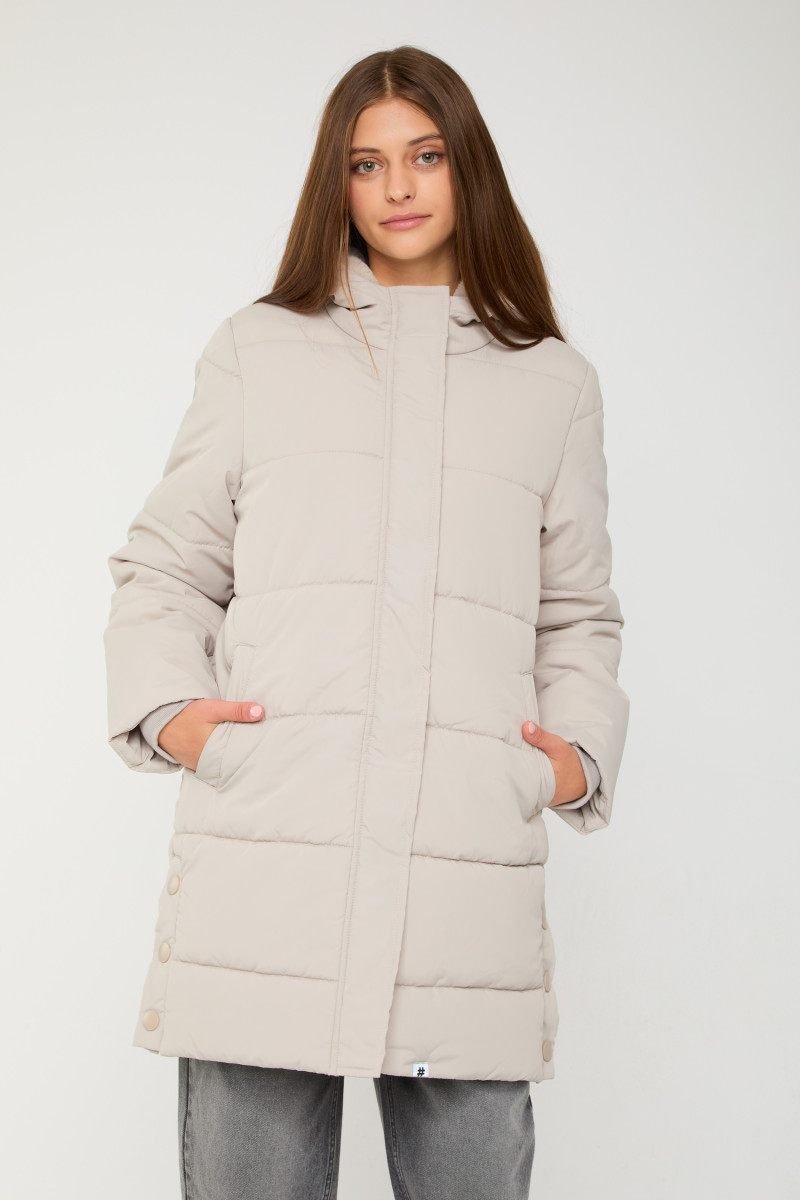 Beżowa przedłużana ocieplana kurtka z kapturem