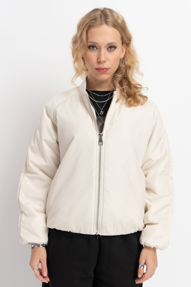 Kremowa kurtka typu bomberka z lekko ocieplana zapinana na zamek
