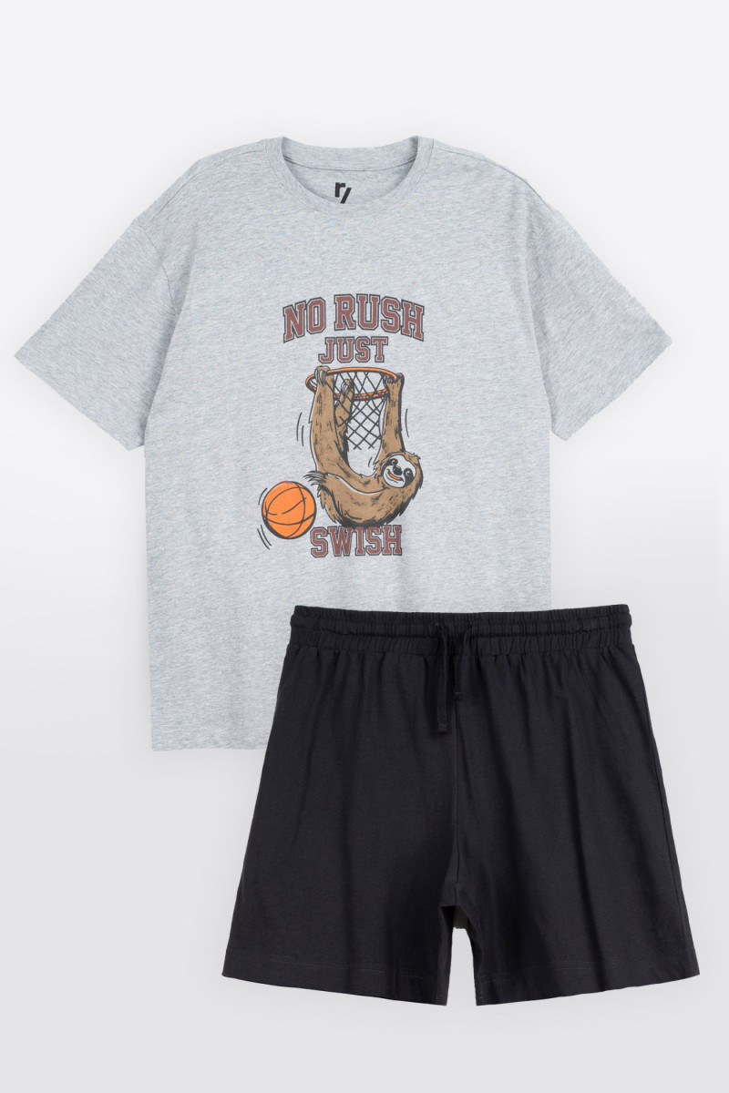 Biało-niebieska bawełniana piżama z autorską grafiką