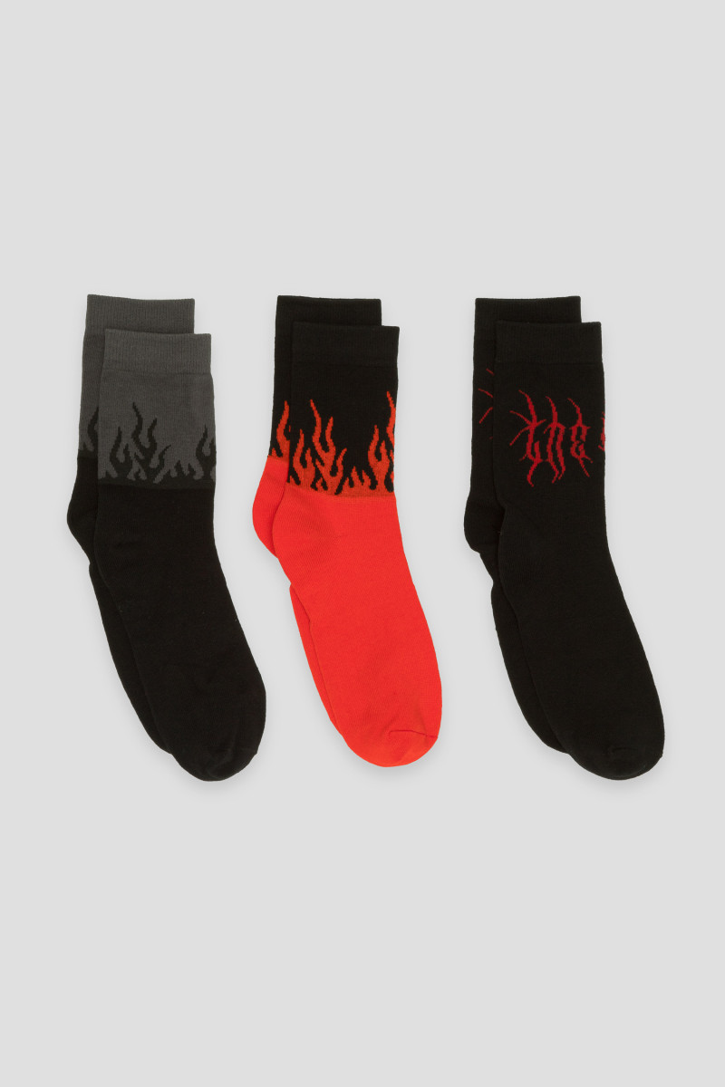 Wzorzyste skarpety 3-PAK z motywem płomieni