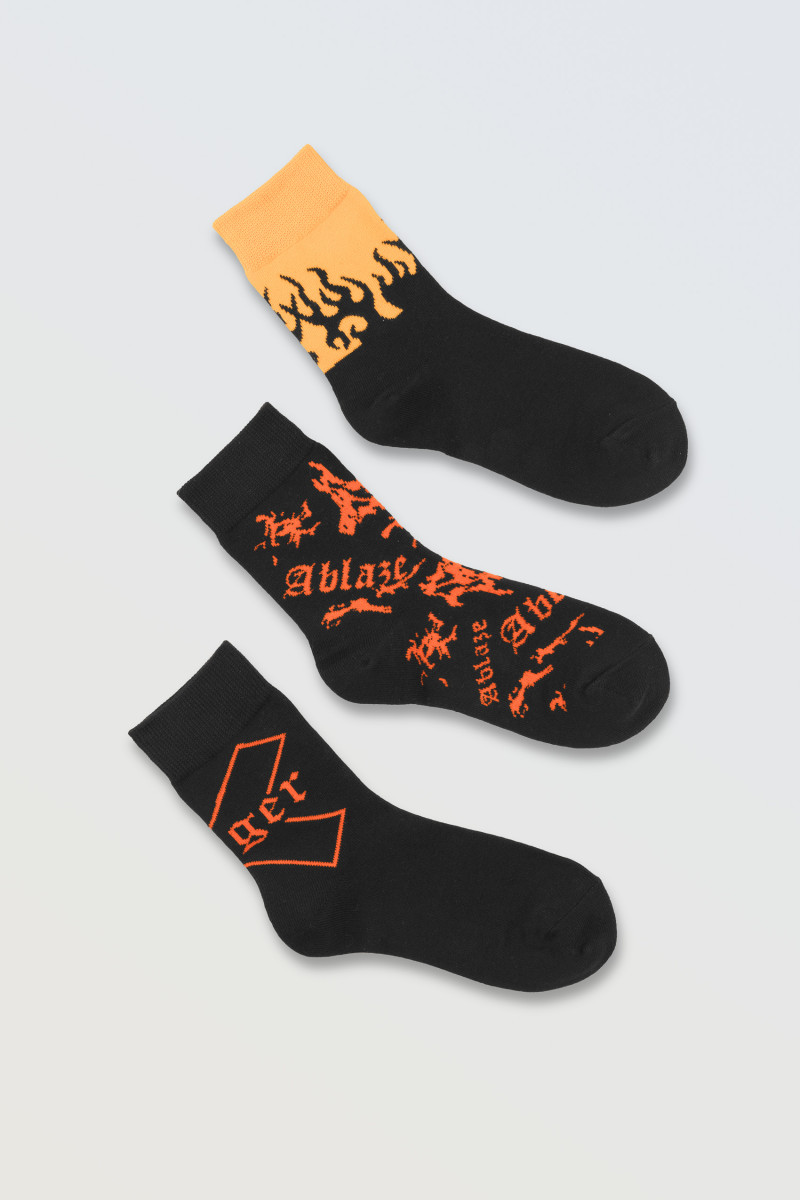 Pomarańczowo-czarny zestaw skarpet z grafiką 3-PAK