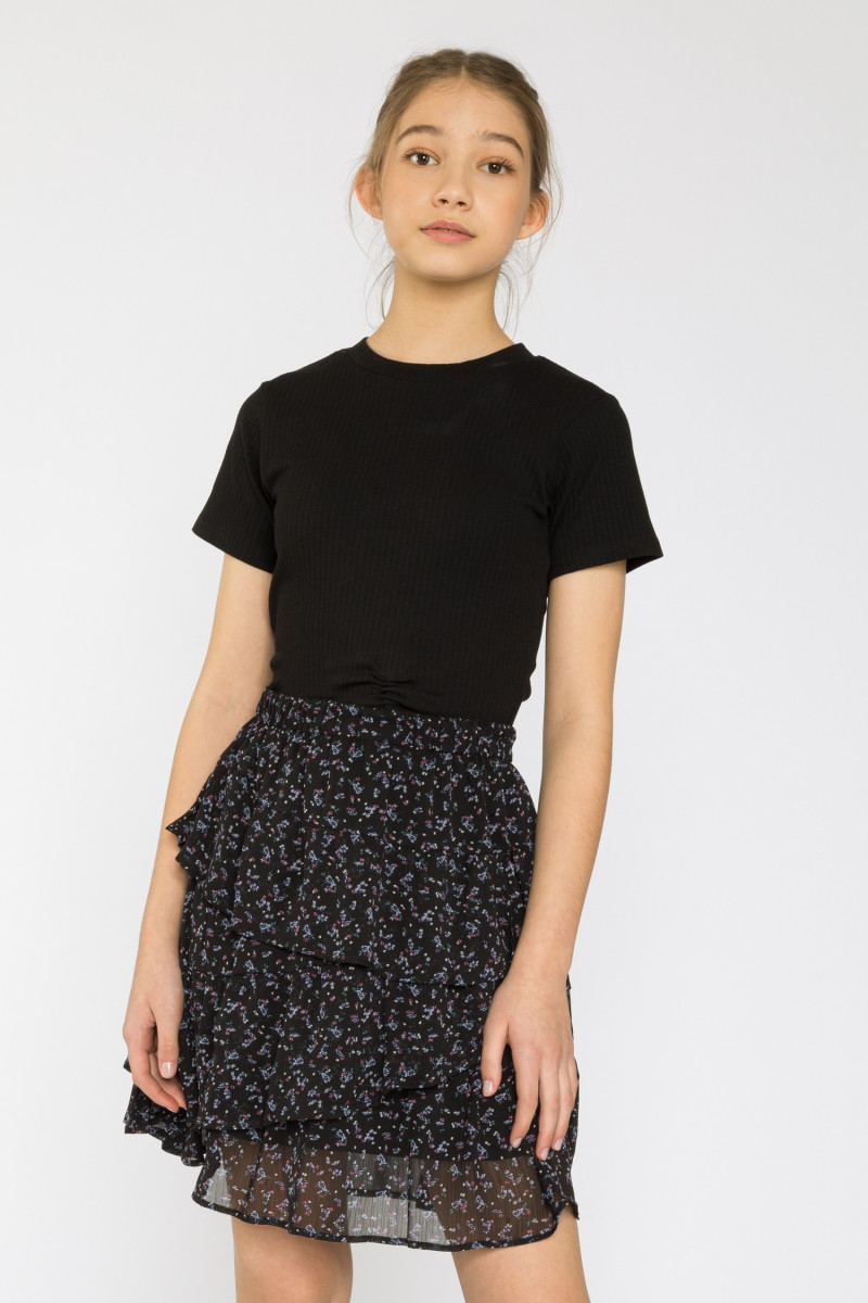 Czarna spódnica dla dziewczyny z falbanami w kwiaty
