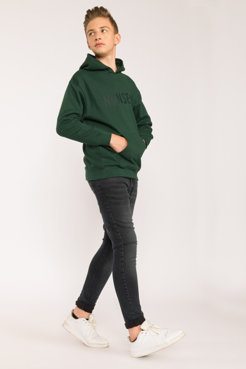 Szare spodnie jeansowe typu joggery z modnymi przeszyciami