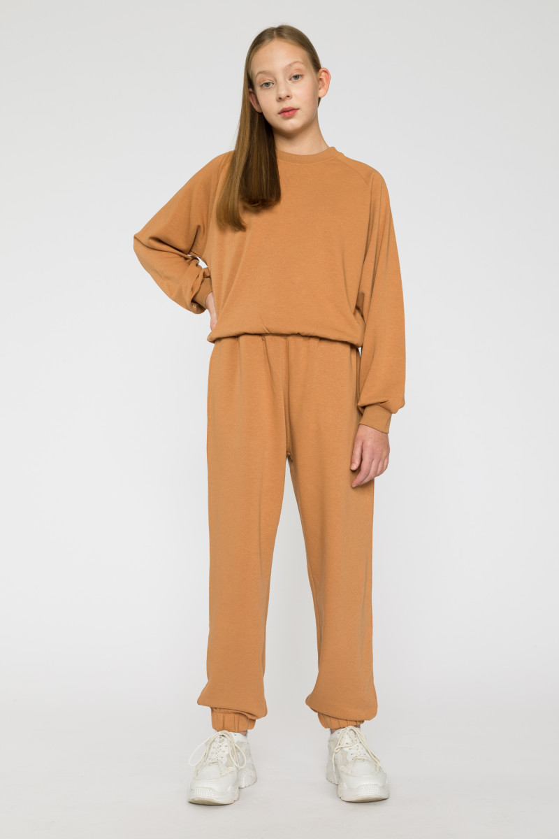 Beżowe spodnie dresowe OVERSIZE z minimalistycznym nadrukiem