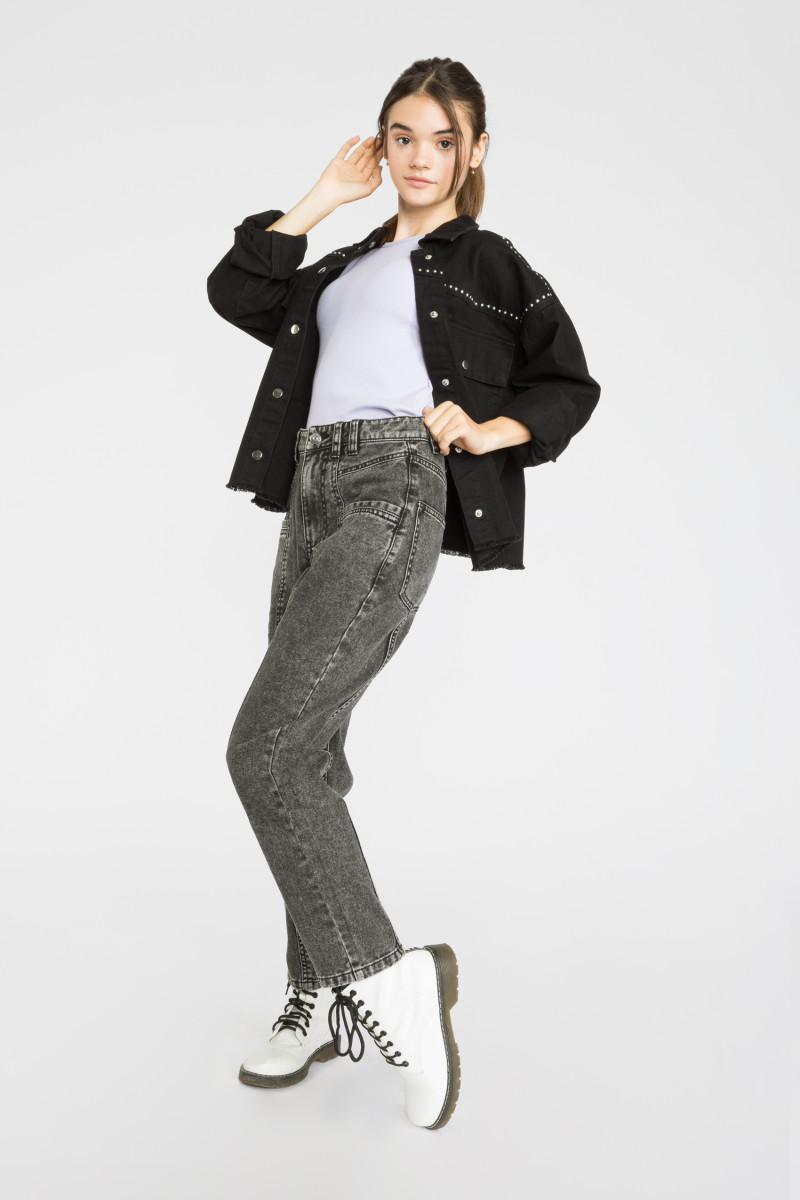 Czarne jeansy mom fit z przeszyciami dziewczęce| Reporter