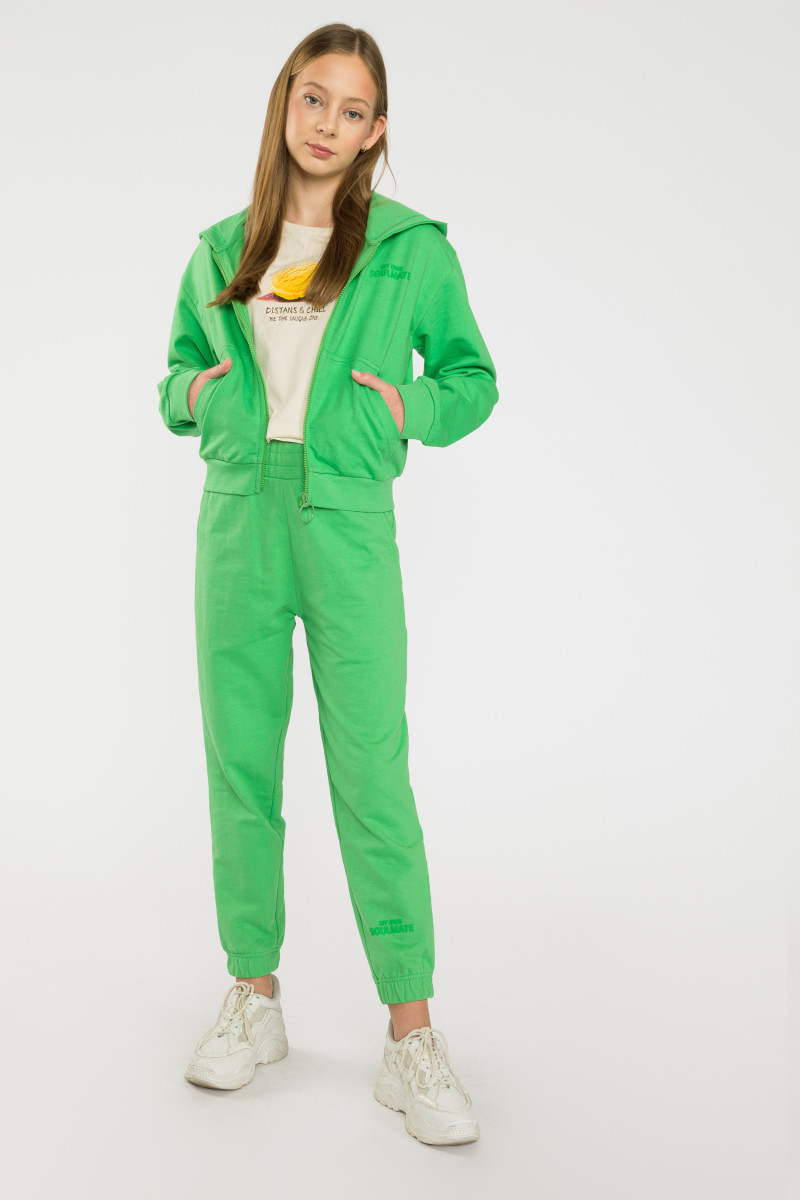 Zielone spodnie dresowe z ozdobnym wypukłym nadrukiem