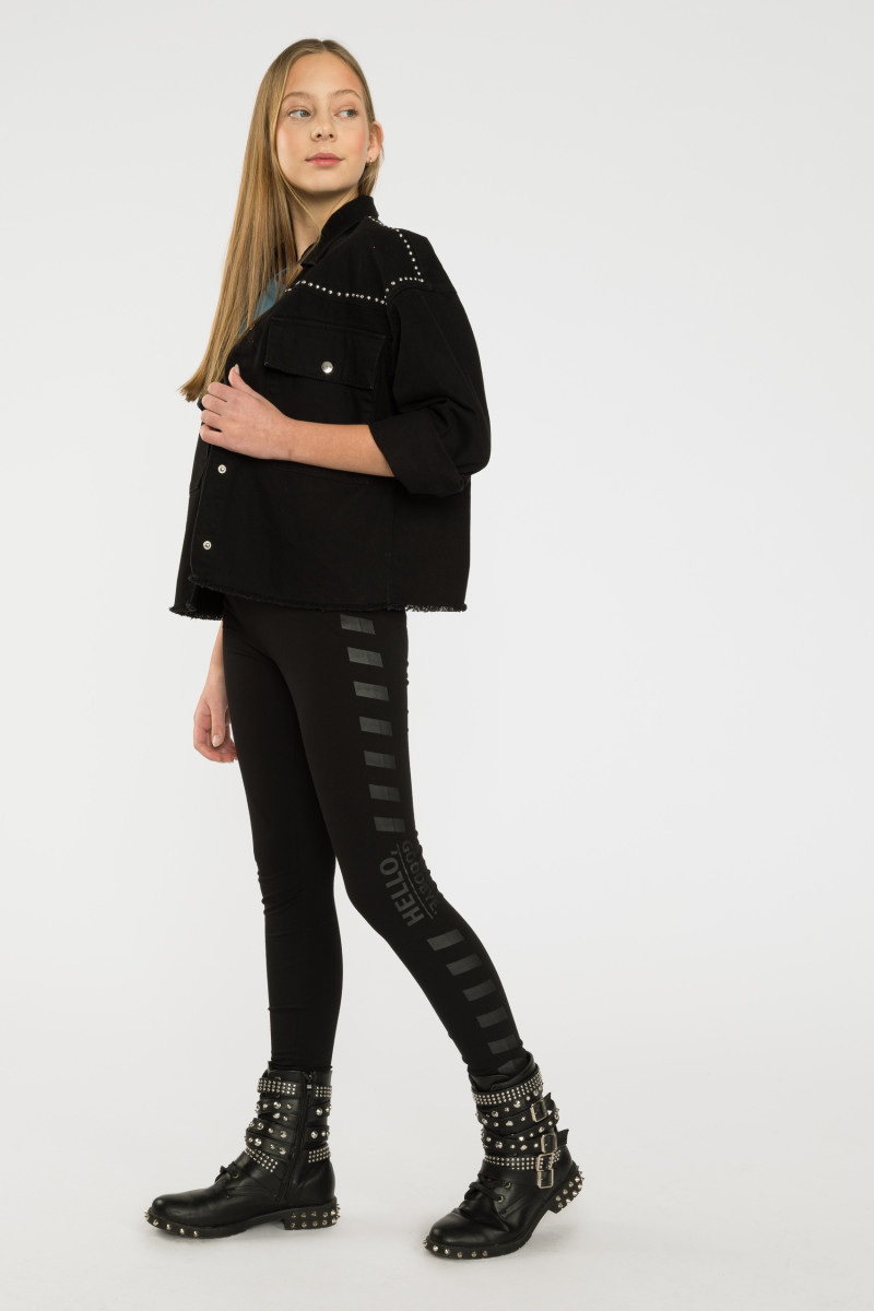 Czarne elastyczne legginsy z nadrukiem GOODBYE, HELLO