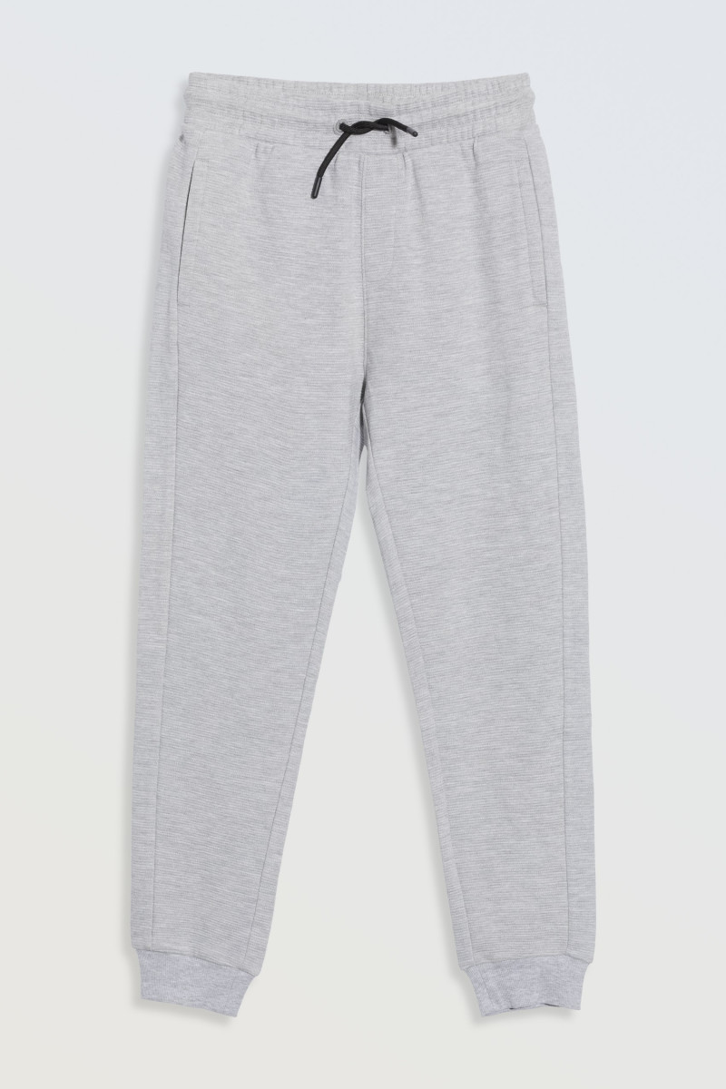 Szare spodnie dresowe z dzianiny prążkowanej z gumą w pasie