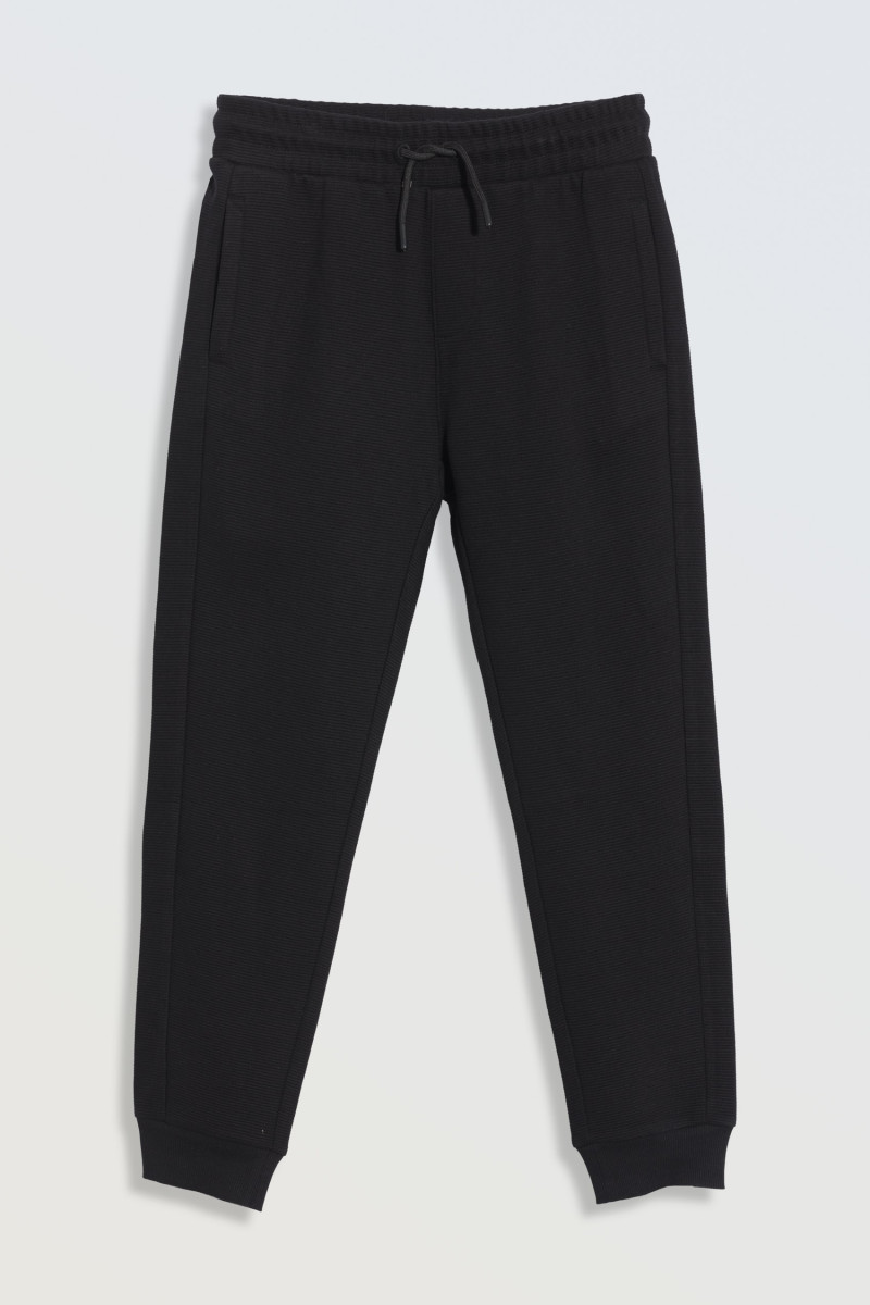 Czarne spodnie dresowe z dzianiny prążkowanej z gumą w pasie