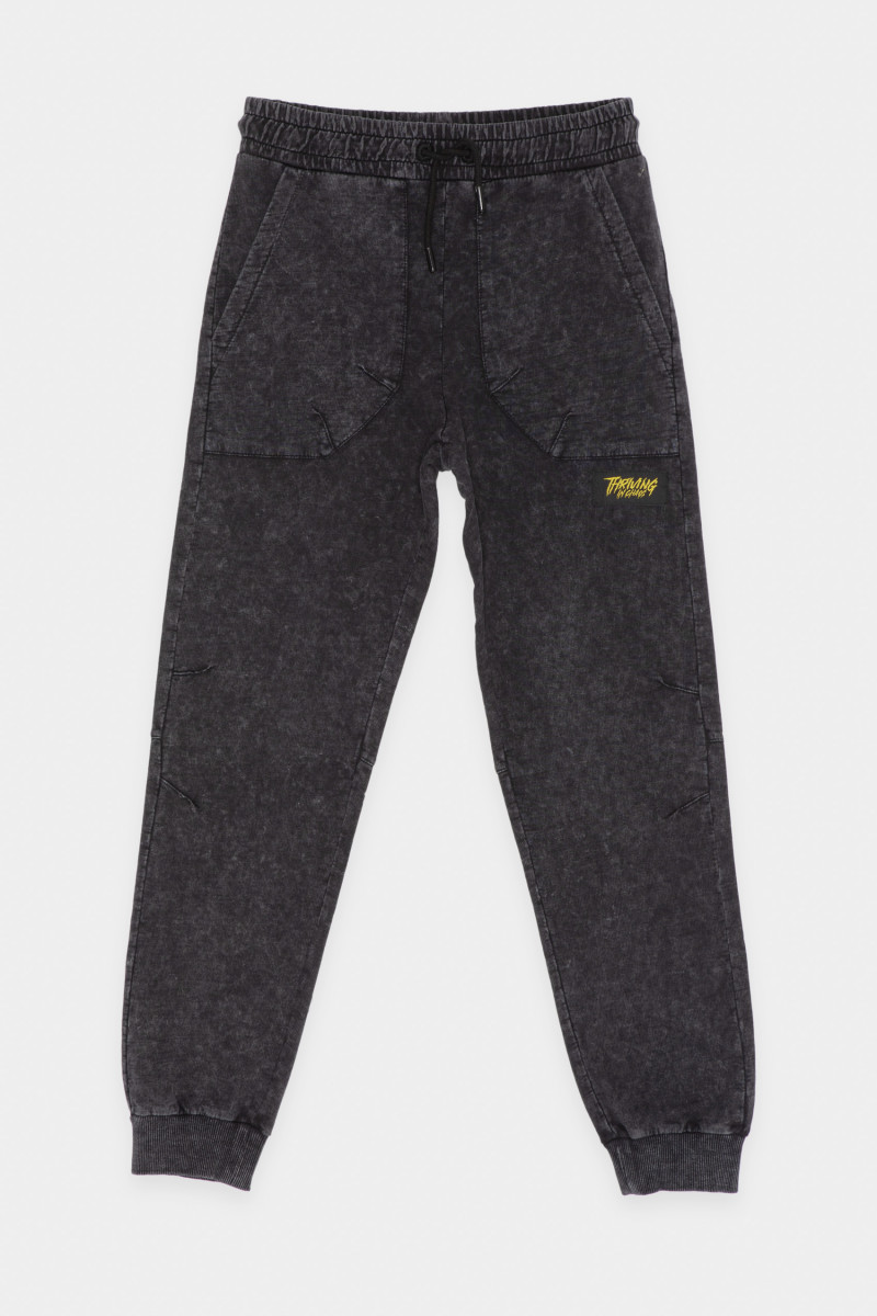 Czarne spodnie dresowe z efektem sprania z naszywanymi kieszeniami, wykonane z bawełny czesankowej wysokiej jakości