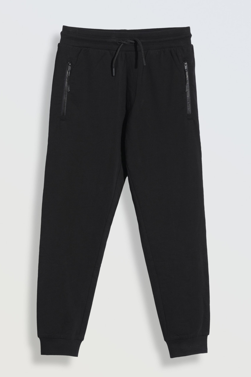 Czarne spodnie dresowe z kieszeniami zapinanymi na zamek wykonane z bawełny czesankowej wysokiej jakości