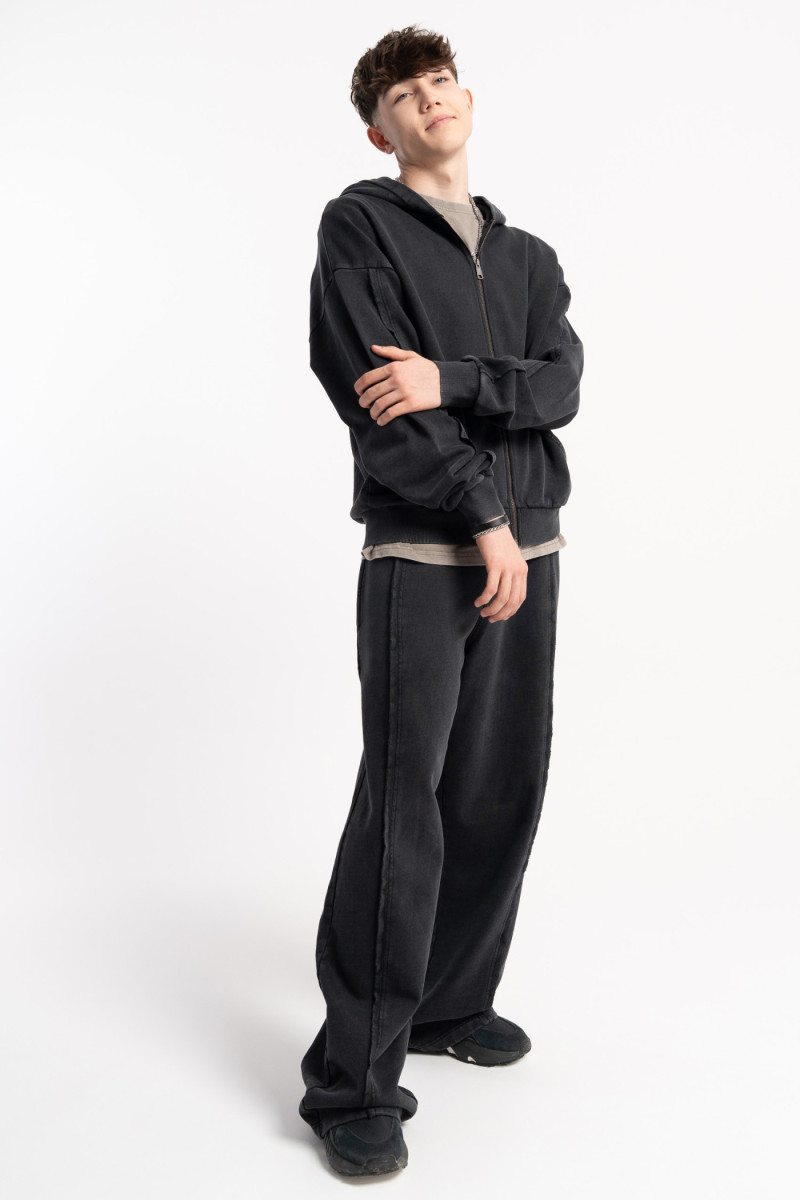 Ciemnoszare spodnie dresowe z szerokimi nogawkami z efektem sprania to streetwear w nowoczesnym wydaniu. Luźny krój i szerokie nogawki gwarantują swobodę, a mięsista, miękka dzianina bawełniana zapewnia wyjątkowy komfort. W pasie wszyta guma ze sznurkiem umożliwia idealne dopasowanie, a modne przeszycia imitujące rozporek i cięcia na nogawkach dodają charakteru. Efekt ACID WASH nadaje spodniom unikalny wygląd bez nadruków. Boczne kieszenie są praktyczne i wygodne. Tworząc ten model, zadbaliśmy o jakość i styl, który idealnie wpisuje się w młodzieżowe trendy. Sprawdź naszą kolekcję z oryginalnymi fasonami.