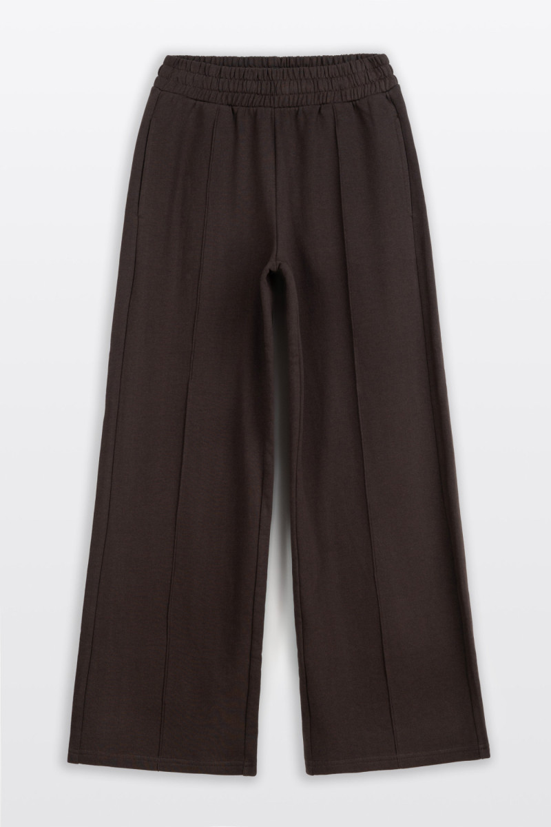 Brązowe spodnie dresowe STRAIGHT z modnymi przeszyciami