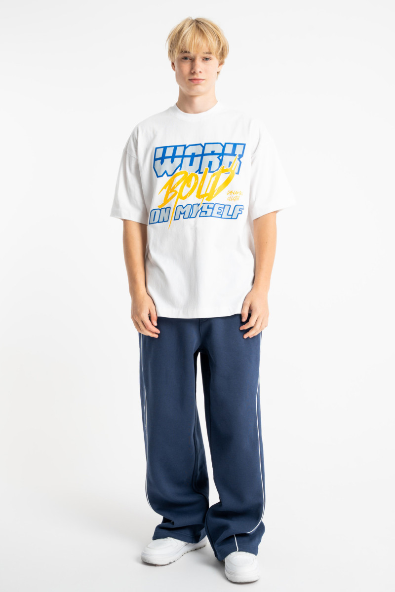 Granatowe spodnie dresowe WIDE LEG z kontrastowymi wypustkami podkreślającymi cięcia