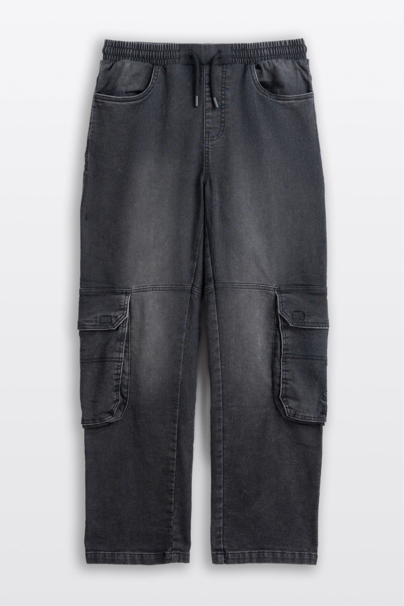 Ciemnoszare spodnie jeansowe typu CARGO z efektem sprania