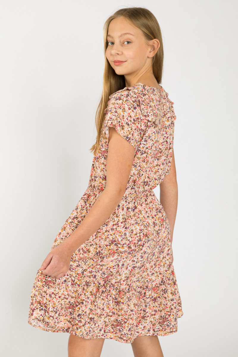 Różowa sukienka z falbanami w kwiaty dla dziewczyny