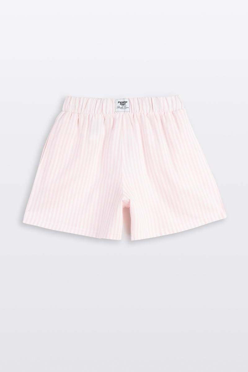 Krótkie spodenki z tkaniny w różowe paski