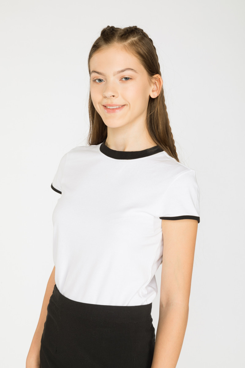 Biała bluzka z kontrastowym wykończeniem dla dziewczyny