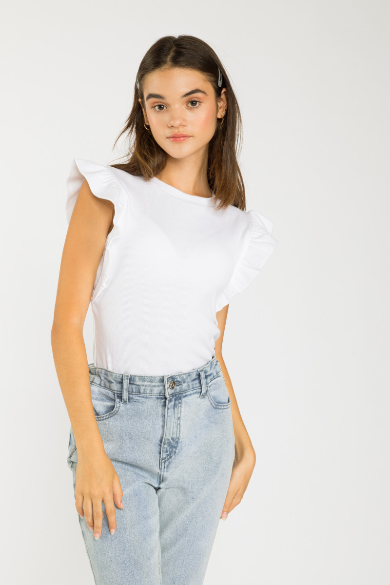 Biała bluzka z falbankami przy rękawach