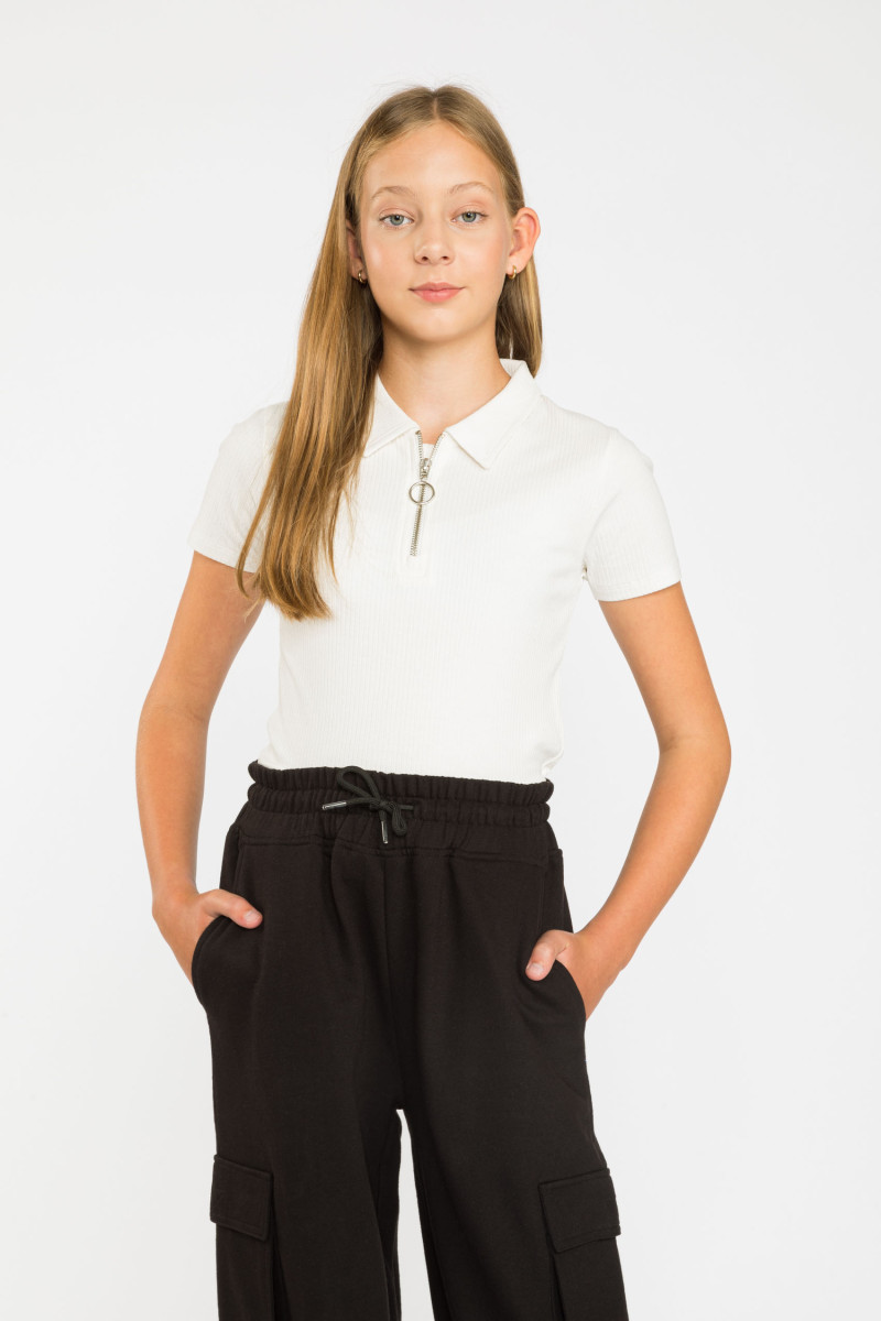 Czarne leginsy dla dziewczyny z przeszyciami na kolanach
