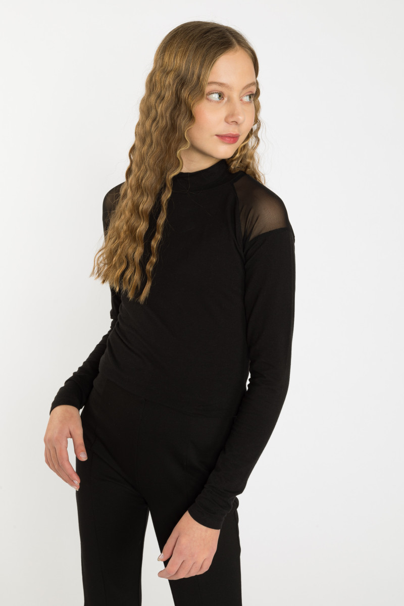 Czarny półgolf z siateczkowymi elementami